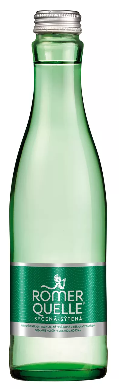 Dodáváme po balení 12 ks, vratné sklo, záloha 110Kč. Přírodní minerální voda sycená. Romerquelle perlivá obsahuje vysoký podíl hořčíku, pomáhá k tomu, abychom se cítili dobře. Čistota a skvělé vlastnosti přírodní minerální vody Römerquelle, čerpané z podzemních pramenů, obohacovaly život spotřebitelů po celá staletí. Přírodní minerální voda Römerquelle probouzí smysly a dodává tělu svěžest a potřebné minerály. Tato vysoce kvalitní voda obsahuje ideální poměr vápníku a hořčíku. Konkrétně poskytuje 18% doporučeného denního příjmu vápníku a 19% doporučeného denního příjmu hořčíku.